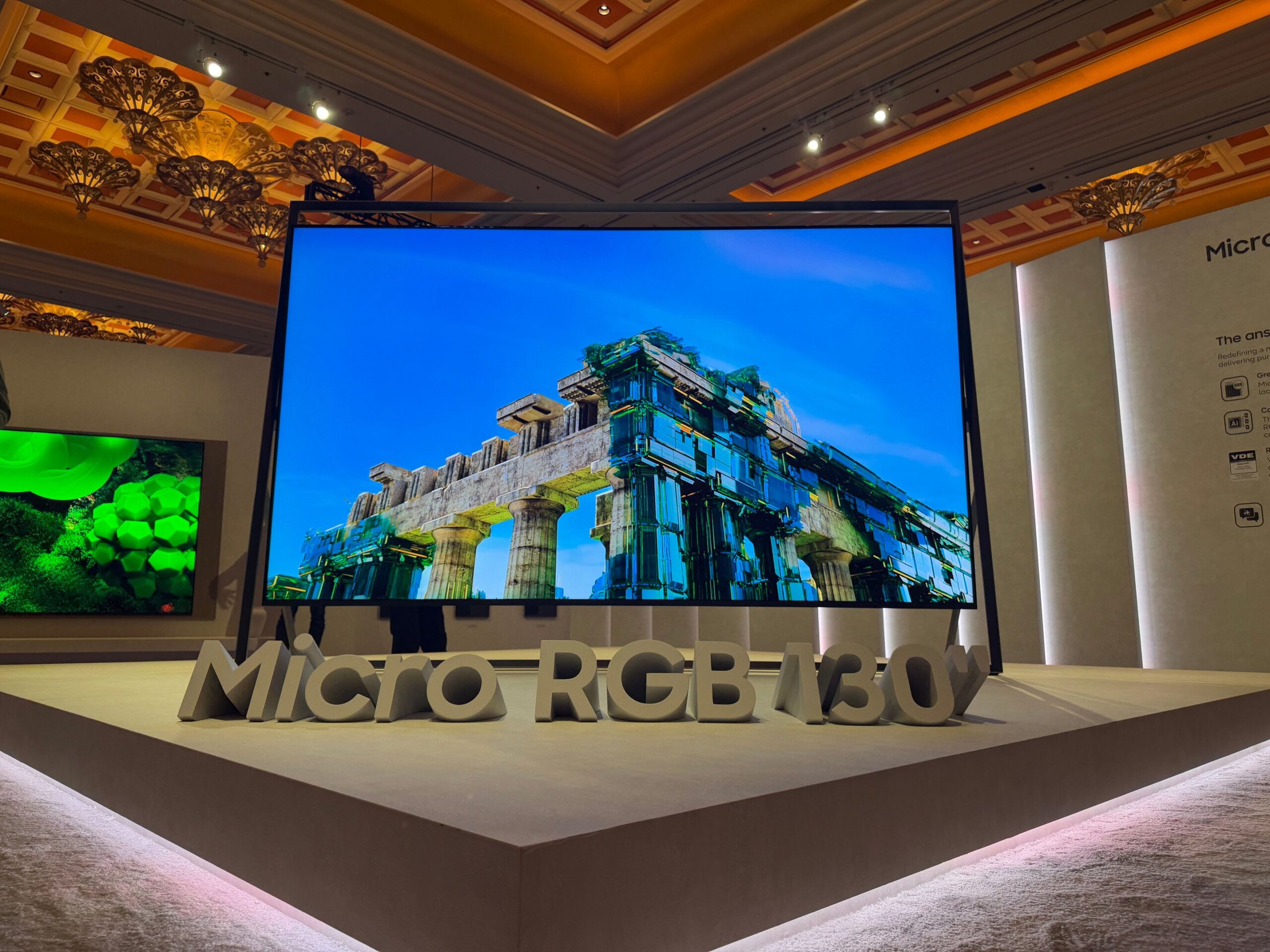 A TV Micro RGB de 130 polegadas estará em exposição na área da Samsung durante a CES 2026, que ocorre entre 6 e 9 de janeiro em Las Vegas, Nevada.