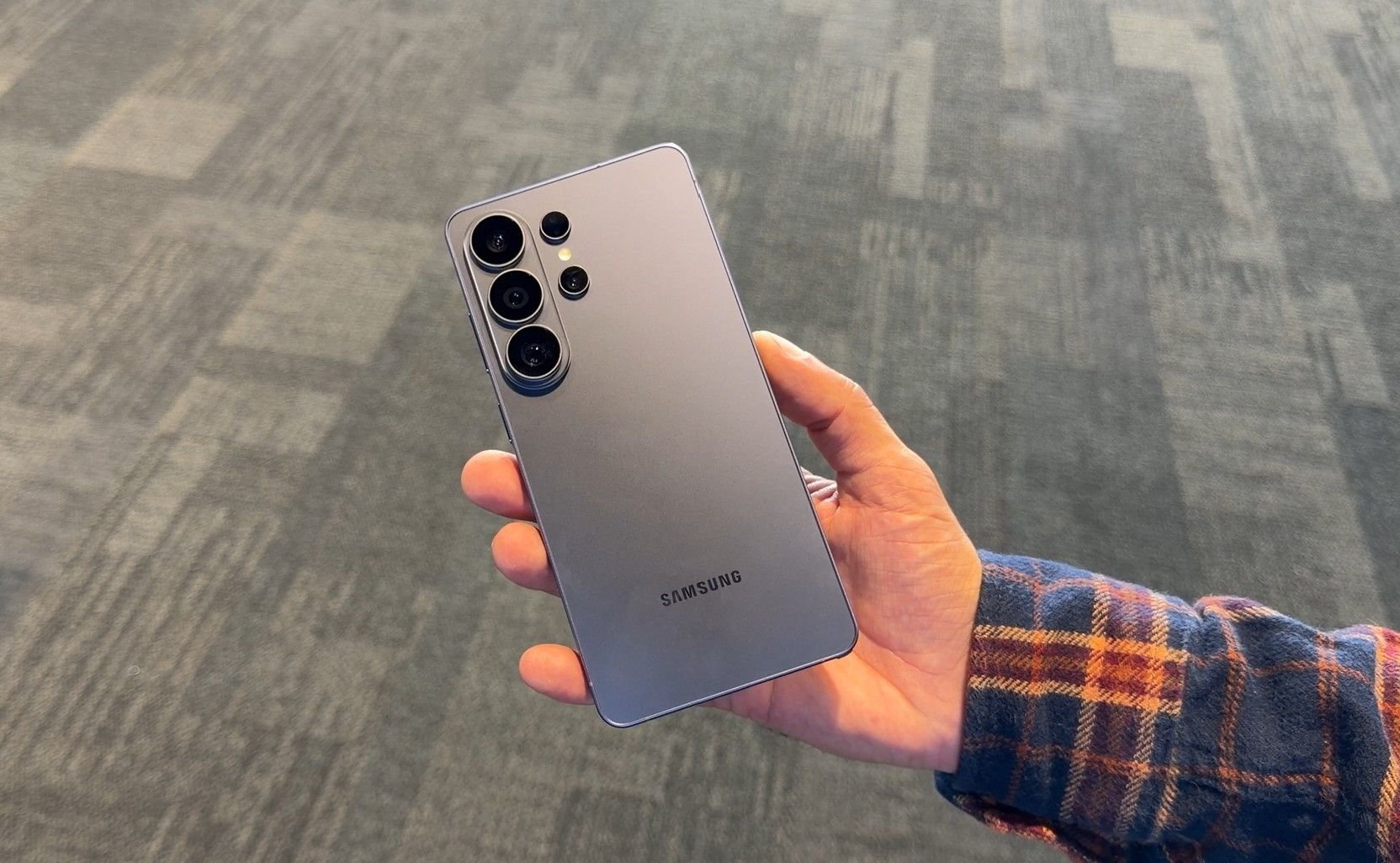 Para quem tenta ver pelos lados, a tela do Galaxy S26 Ultra pode ficar completamente escura, como as películas de privacidade. (Foto: Wellington Arruda/TecMundo)
